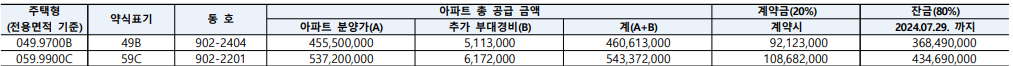계약시 20% 납부 후 입주 때 잔금 80% 납부하는 방식이며, 계약이후 2개월내 잔금납부를 완료하여야 합니다.