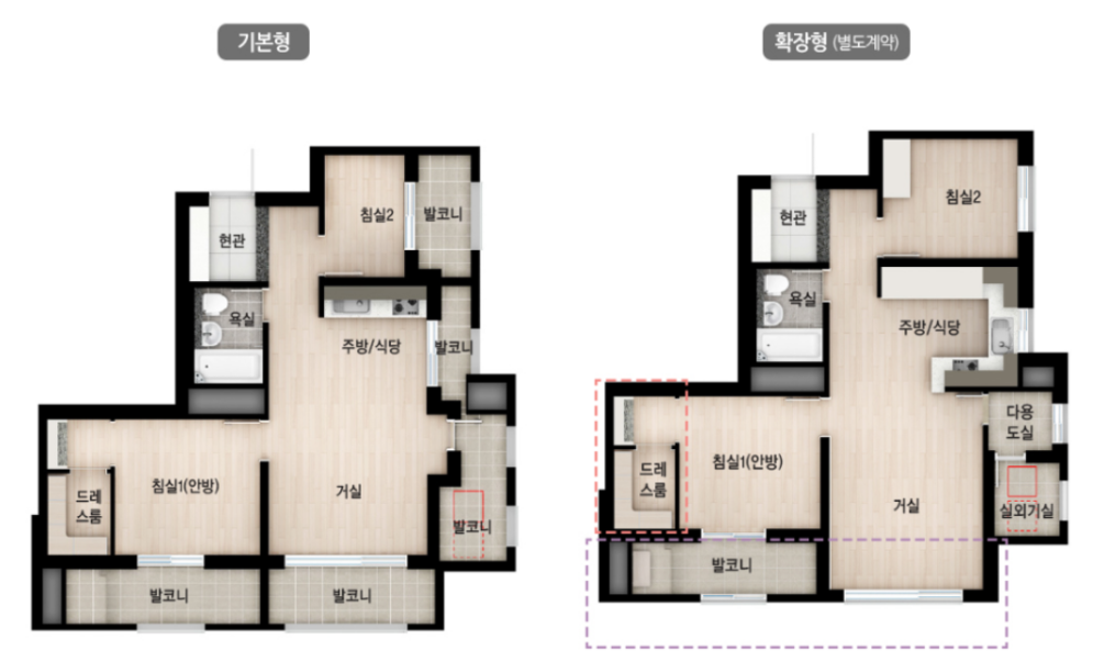 이번 줍줍 902동 2404호/2201호는 각각 남서향, 남동향이며 타워형, 4bay 배치입니다.