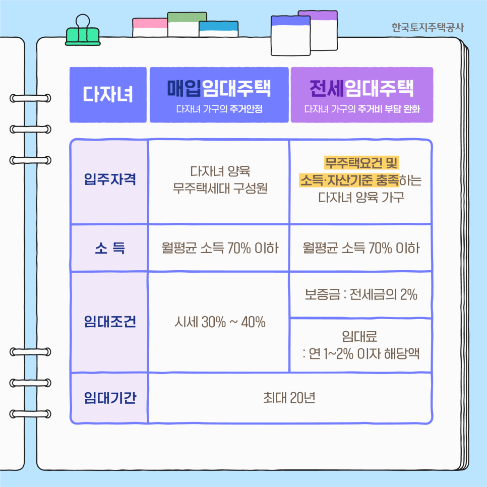 다자녀의 가구의 주거 안정이 가능하도록 공급되는 주택입니다.