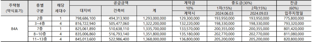 계약시 10% 납부 후 중도금 30%, 입주 때 잔금 60% 납부하는 방식입니다.