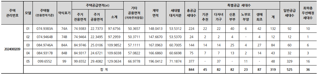 | 규모 | 지하 2층 ~ 지상 25층, 10개동, 총 844세대 (특별공급 319세대) |