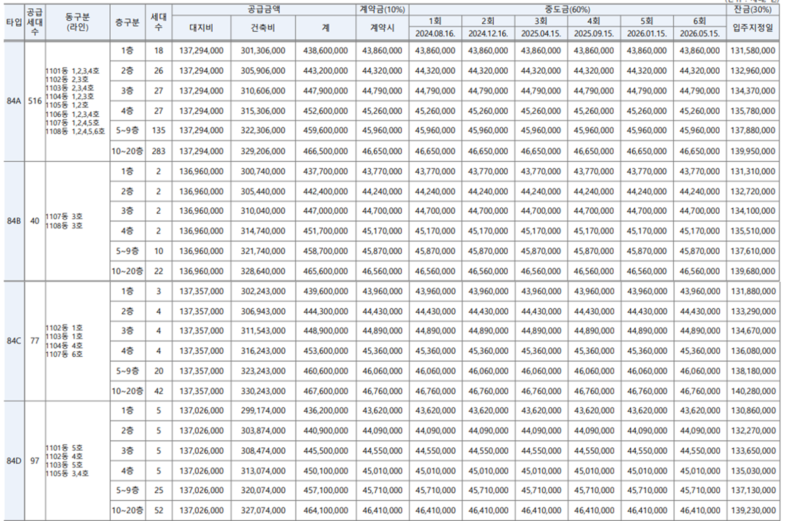 | 잔금구조 | 계약금 10%, 중도금 60%(이자후불제), 잔금 30% |