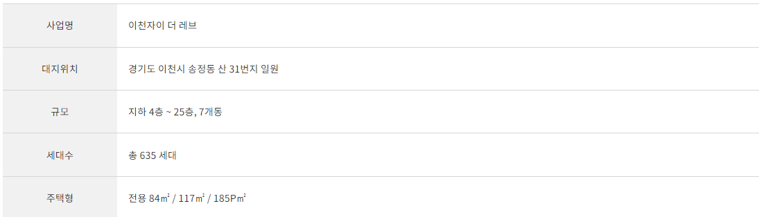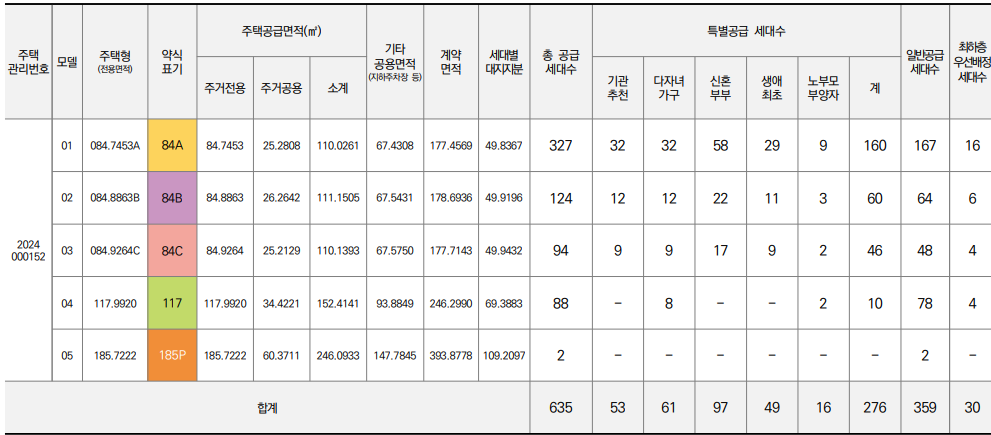 | 규모 | 지하 4층 ~ 지상 25층, 7개동, 총 635세대 (특별공급 276세대) |