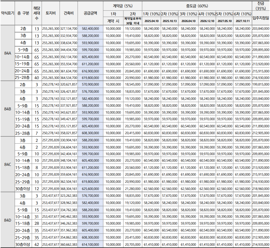 | 잔금구조 | 계약금 5%(1천만원+나머지), 중도금 60%(이자후불제), 잔금 35% |