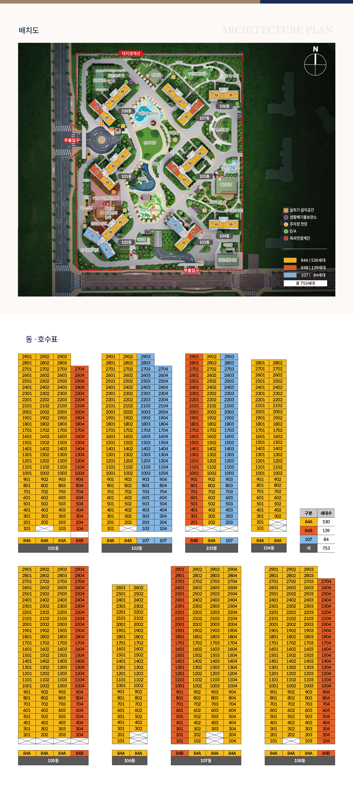 | 규모 | 지하 2층 ~ 지상 29층, 8개동, 총 753세대 (특별공급 378세대) |