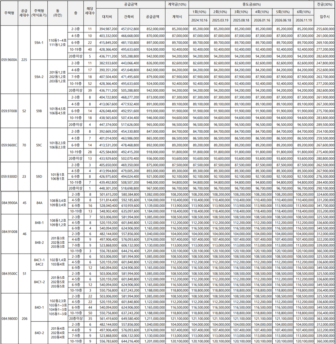 | 잔금구조 | 계약금 10%, 중도금 60%(이자후불제), 잔금 30% |