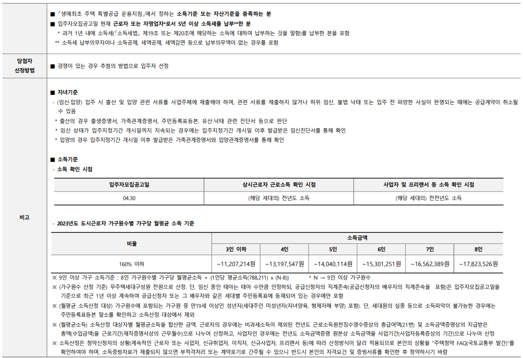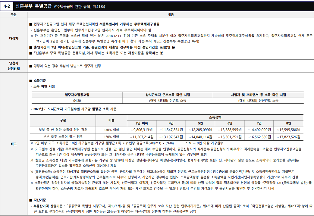 - 다자녀. 신혼부부, 생애최초 특별공급 소득 및 자산 기준을 충족