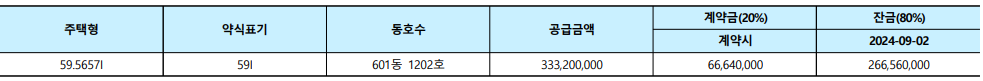 계약시 20% 납부 후 입주 때 잔금 80% 납부하는 방식이며, 계약이후 2개월내 잔금납부를 완료하여야 합니다.