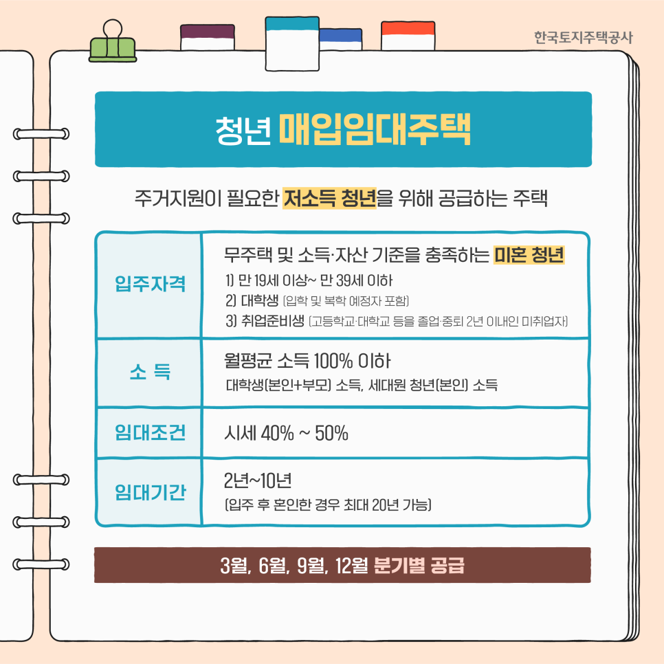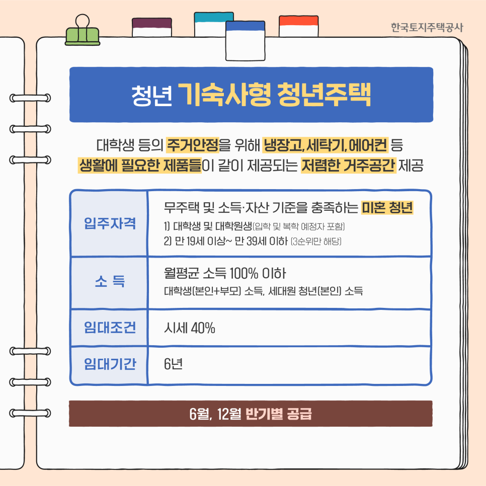 주거지원이 필요한 저소득 청년을 위해 공급되는 주택입니다.