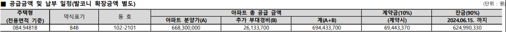 - 84B : 6.9억(발코니 확장비 포함)